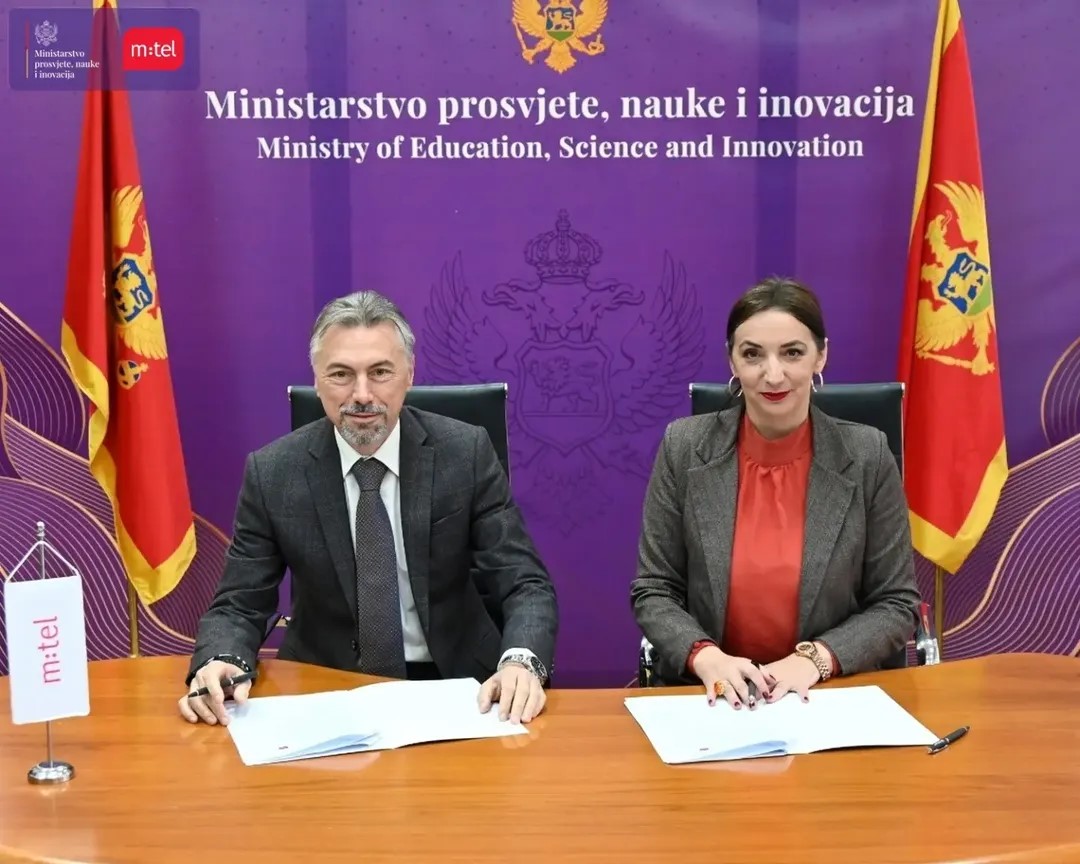 Podgorica, 17. mart 2026 - Prof. dr Anđela Jakšić-Stojanović, ministarka prosvjete, nauke i inovacija i Zoran Milovanović, izvršni direktor kompanije MTEL potpisali su Memorandum o saradnji kojim se obezbjeđuje besplatan pristup internetu za osnovne i srednje škole na teritoriji Crne Gore.